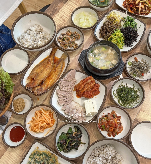 슬이네밥상은 가성비 좋은 통영 맛집 추천으로, 2인 정식에 멍게와 전어회까지 푸짐하게 나옵니다. 현지인들이 자주 찾는 곳으로, 보리밥 정식을 주문하면 숭늉과 각종 반찬이 함께 나오며, 신선한 해산물도 포함되어 있습니다. 보리밥에 나물 비벼 먹으니 건강한 느낌이 들고, 멍게와 전어회는 신선해서 맛있게 먹을 수 있습니다.