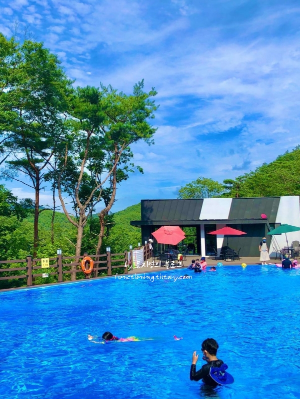 휴양림 내에는 잘 마련된 놀이터와 큰 수영장이 있어 아이들과 함께 여름에 방문하기에 좋은 충북 보은 가볼만한곳 베스트 10이고 저희는 평일에 가서 그런지 숙박하는 사람들이 많지 않아 마치 전세낸 것처럼 마음껏 즐길 수 있었습니다. 저녁에는 준비해간 고기를 휴양림에서 숯불에 구워 먹었는데, 역시 고기는 숯불에 구워야 제맛이더군요.