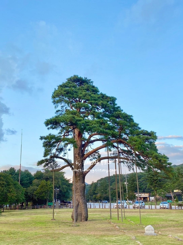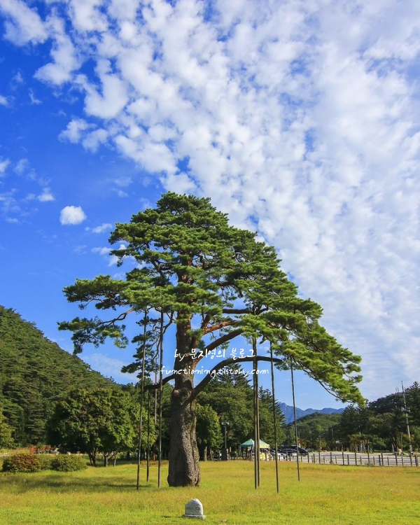법주사로 가는 길에 들러서 본 이 소나무는 역사 시간에 많이 들어봤던 나무라서 직접 보니 감회가 새로웠습니다. 속리산 가는 길목에 위치한 정이품송은 천연기념물 제103호로 지정되어 있으며, 500년 정도 된 소나무로 추정됩니다.