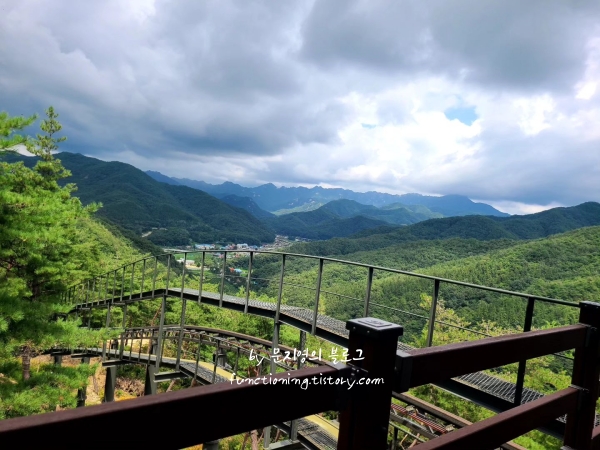 보은 아이와 가볼만한곳 베스트 10으로도 좋은 곳입니다. 모노레일을 타고 올라가는 동안, 피톤치드 가득한 숲속을 20분 정도 운행합니다. 올라가는 길에 바라보는 풍경이 정말 아름다워서 눈을 뗄 수가 없습니다. 정상에 도착하면 저 멀리 속리산의 문장대와 천왕봉까지 한눈에 들어오는데, 아~ 이렇게 아름다워도 되나 싶었습니다. 전망대에서 보이는 하늘과 경치는 말로 다 표현할 수 없을 정도로 아름답습니다.