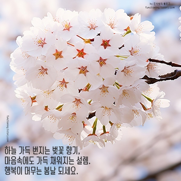 봄바람에 실려 온 따뜻한 기운이 온몸을 감싸주는 시기입니다. 소소한 행복이 곳곳에서 피어나는 계절, 설레는 순간들이 많아지길 바랍니다.