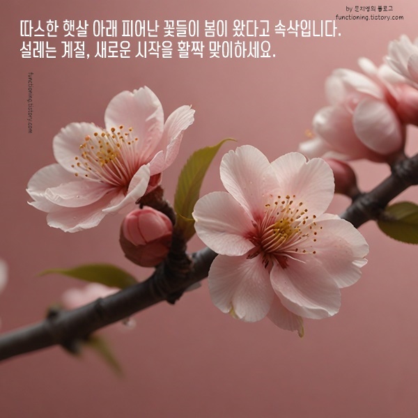 봄은 언제나 희망을 품고 찾아오는 계절입니다. 차가웠던 바람이 부드러워지고, 세상이 더 따뜻한 색으로 물들어 가고 있네요. 새로운 계절과 함께 설렘 가득한 날들이 이어지길 바랍니다.