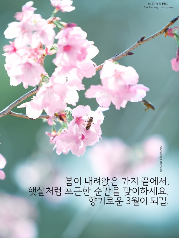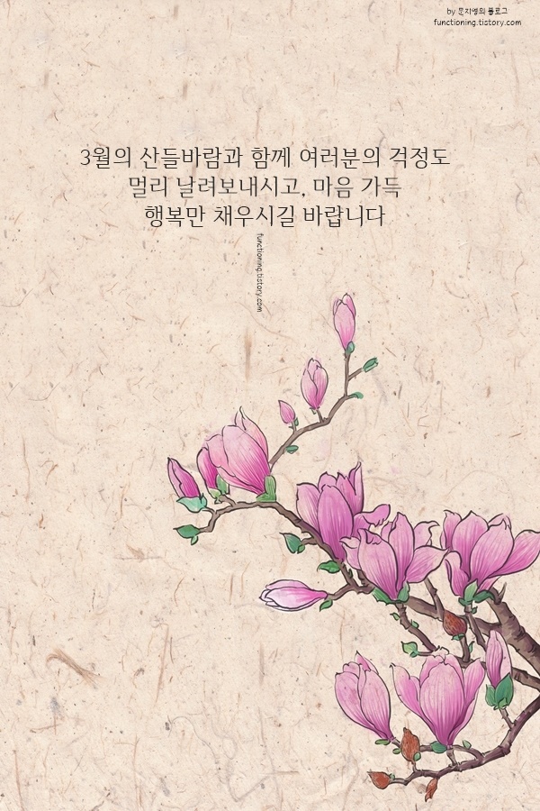 살며시 스치는 바람에도 봄의 향기가 묻어나는 3월입니다. 가벼운 옷차림이 어색하지 않은 계절처럼, 모든 것이 편안하고 즐겁게 흘러갔으면 좋겠습니다.