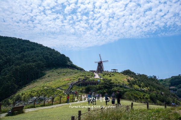 언덕 위 풍차는 이젠 풍경의 일부가 되어버렸습니다. 아쉬운 건 주차 문제예요. 바람의 언덕 바로 앞 유료 주차장은 3,000원이고, 도장포 유람선 선착장 쪽에 주차하면 무료지만 자리가 빨리 차서 서두르는 게 좋아요. 주말이나 연휴 땐 아예 언덕 위쪽 도로변에 세우는 사람들도 많고요. 언덕 아래엔 간단한 간식이나 회도 팔고 있어서, 내려오기 전에 가볍게 들르는 재미도 있어요.