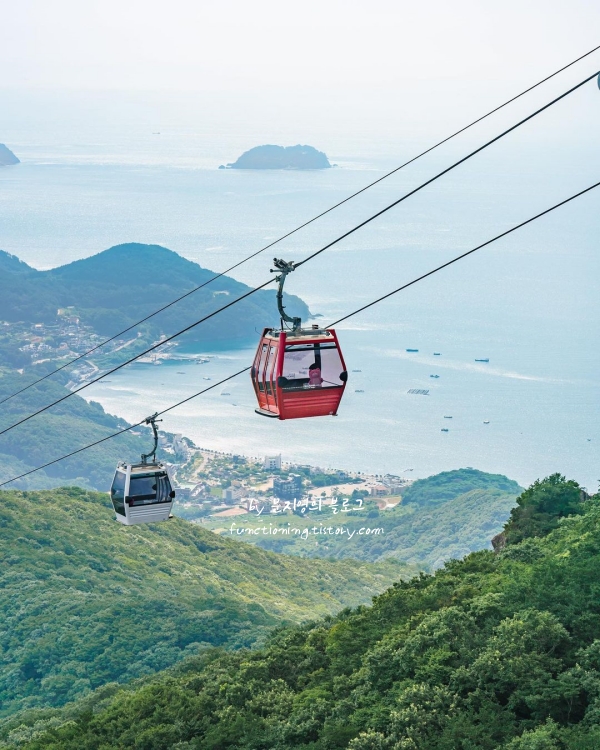 거제 파노라마 케이블카는 타는 순간부터 ‘아, 이건 그냥 관광이 아니라 진짜 풍경 속에 들어가는 거구나’ 싶은 기분이 들어요. 출발하면서 보이던 윤슬 전망대부터 정상이 가까워질수록 점점 더 넓어지는 바다, 그 위에 조각처럼 흩어진 섬들까지… 눈앞이 아니라 발아래까지 펼쳐지는 뷰는 말 그대로 압도적인 거제 가볼만한곳 베스트 10이었습니다.