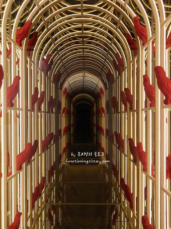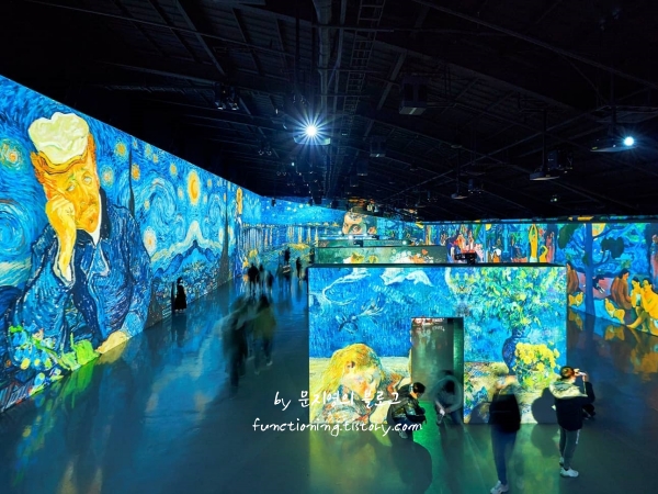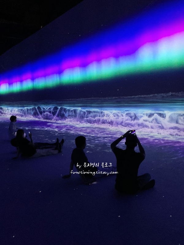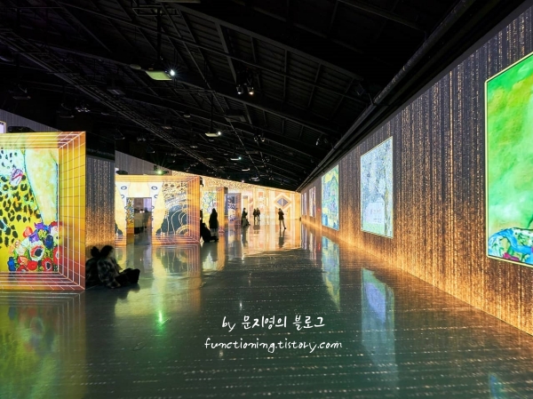 문 열고 들어서자 마치 빛으로 만든 정글 한가운데 있는 기분이었어요. 벽마다 꿈틀대는 별빛과 야자수의 흔적 같은 영상을 따라 걷다 보면, 내가 서 있는 이 공간조차 작품 같아집니다. 분홍빛 모래가 떨어지는 분수 앞에서 나도 모르게 숨을 멈췄고, 거대한 달토끼 조형물 아래에서는 쉿—마지막 '빛의 정원'에선 모네의 그림이 눈 앞에서 살아 움직이니까, “이럴 거면 그냥 여기서 살까?” 생각도 듭니다.
