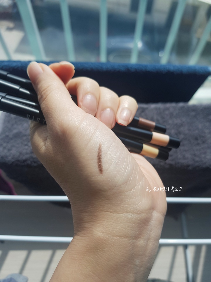 좀 물러요. 부드럽다는 것은 좀 말랑말랑하다는 거죠. 사용하다가 부러지는 것이 아니라 덩어리로 떨어져 나가요. 너무 길게 뽑아서 사용하면 안 됩니다. 뭐 단점은 딱히 없었습니다. 이게 핸폰으로 찍어서 뽀샤시한 느낌 때문에 색감이 잘 안 보이지만 씨스터앤 제품은 색이 진짜 예뻐요. 저 같은 똥손도 쉽고 간편하고 부담없이 사용할 수 있다는 게 무엇보다 최고였어요. 지울 때는 집에 있는 클렌징 젤, 클렌징 오일 같은 걸로 문질러주니까 깨끗하게 지워졌습니다. 무엇보다 색감이 마음에 들어서 추가로 구매할 의향이 있답니다.