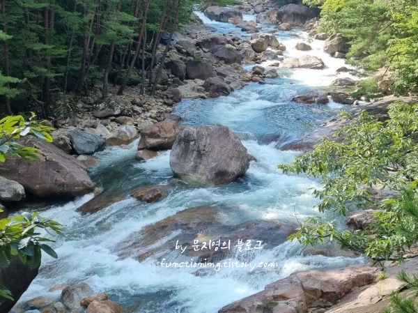 지리산의 맑은 계곡물을 옆에 끼고 걷는 이 길은 경사가 완만해서 누구나 편안하게 즐길 수 있는 산책로예요. 시원하게 쏟아지는 물소리가 귀를 씻어주는 것 같고, 울창한 소나무 숲이 뿜어내는 피톤치드 덕분에 걷는 내내 활력이 샘솟는 기분이었죠. 계곡 위에 놓인 방장교를 건널 때 느껴지는 상쾌한 바람은 마음을 정화해 줍니다.