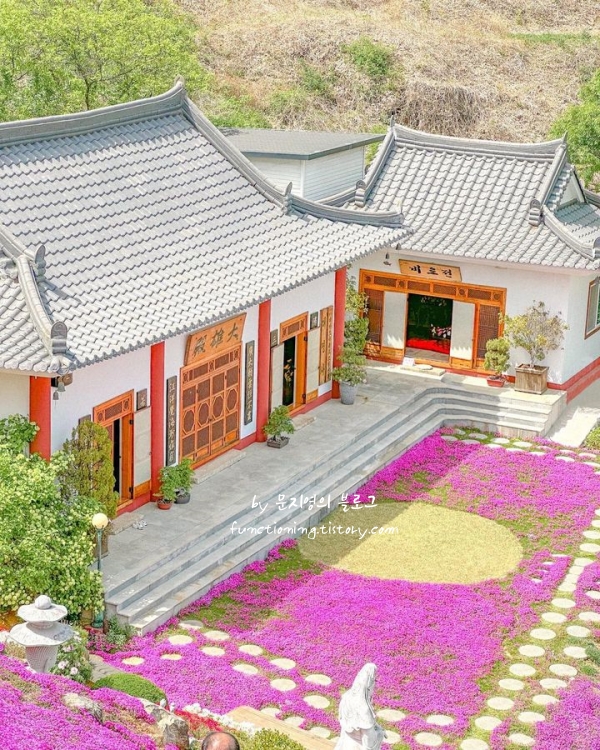 최근 꽃잔디 성지로 떠오르고 있는 이곳은 봄이면 온 사찰 마당이 자줏빛 융단을 깔아놓은 듯 변신해요. 대웅전 앞까지 화려하게 피어난 꽃잔디가 사찰의 고요함과 대비되어 묘한 생동감을 전해주더라고요. 공기가 맑아서 그런지 꽃의 색감이 유독 선명하게 느껴지고, 향긋한 꽃향기가 산들바람에 실려 올 때면 마음이 평온해집니다.