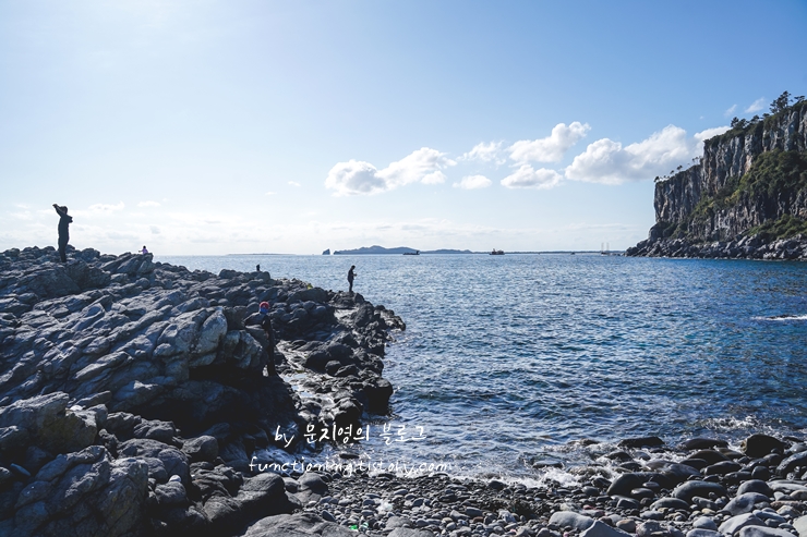 중문 가볼만한곳으로 알려진 주상절리나 애월 해안도로의 해안 절벽 같은 멋진 풍경을 가지고 있으면서 안덕면 최고의 일몰 명소입니다. 지명은 샘물을 '박수'와 절벽을 뜻하는 '기정'이 합쳐져 '바가지로 마실 수 있는 깨끗한 샘물이 솟아나는 절벽'이라는 의미를 가지고 있고 여름 물놀이 장소라서 여름 제주도 가볼만한곳 10곳 추천됩니다.