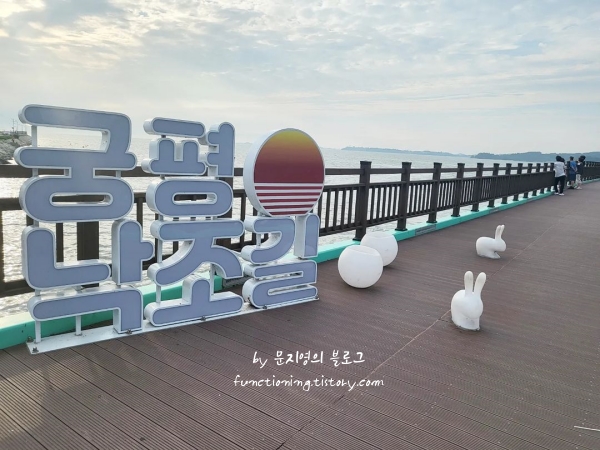 제비꼬리길을 걷는 도중에 제부도 곳곳에서 볼 수 있는 제부도 지도모양 마크를 바다와 함께 볼 수 있습니다. 길 곳곳에 제부도만의 감성이 뿜뿜하는 포토스팟, 그리고 에메랄드 색의 우체통 처럼 생긴 관광 안내함 등등 정말 모두 마음에 들어서 걷는 내내 즐거움이 함께 하는 경기도 바닷가 추천입니다.