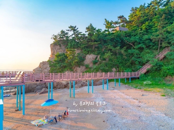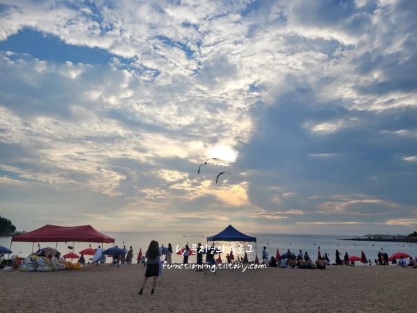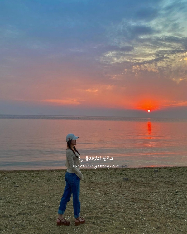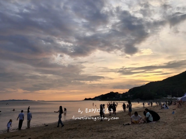 해질녘 모래위에서 노을 캠핑이 가능한 해수욕장