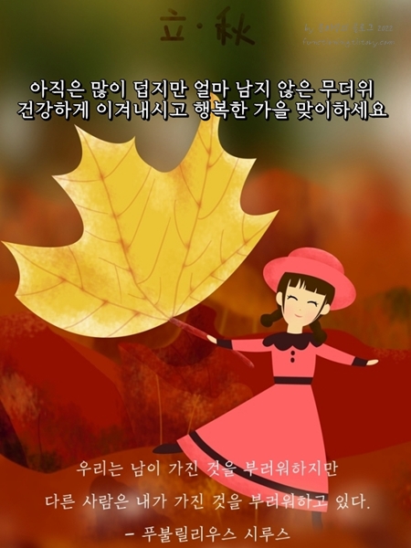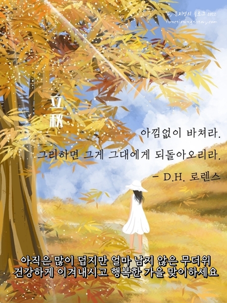 입추 인사말 이미지를 준비해보았습니다. 더위가 기승을 부리는만큼 삼복더위 인사말이나 여름철 인사말, 또 8월 15일에 있는 말복 인사말 이미지 활용할 수 있겠습니다.