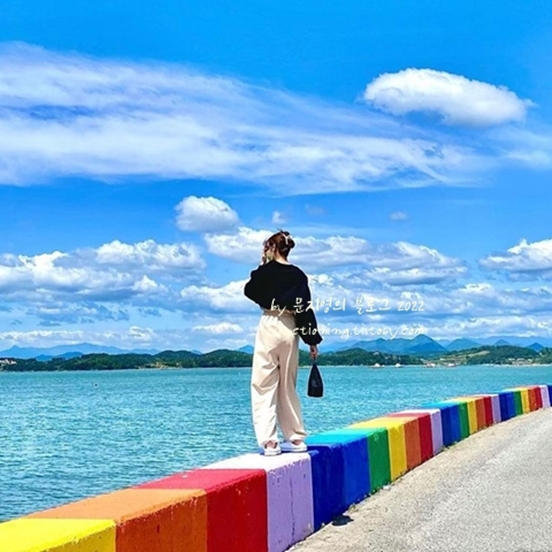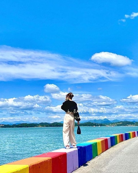제주도보다 예쁜 무지개해안도로가 있다하니 바로 사천 무지개빛 해안도로입니다. 탁 트인 바다를 따라 끝없이 이어지는 무지개해안도로는 한적해서 여유롭게 드라이브 하기도 좋고, 막 찍어도 알록달록 인생샷이 나오는 사천 가볼만한곳 베스트 10 곳이었습니다. 사천대교도 같이 나오게 찍으면 더 예쁩니다. 짧을 줄 알았는데 생각보다 엄청 길었고 어디서 찍어도 다 예쁘게 나오는곳이라 사람이 많아도 걱정 없습니다.