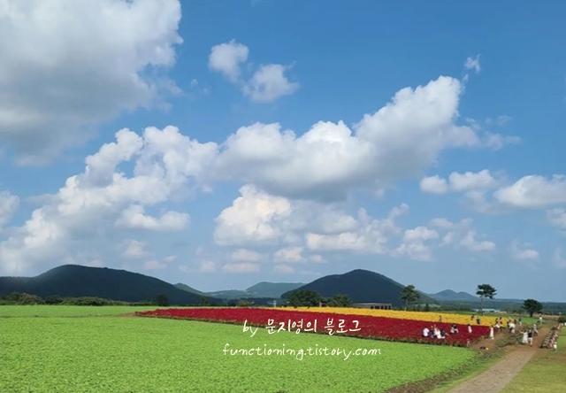 10월 제주도 가볼만한곳 10곳 보롬왓에서는 맨드라미 꽃밭으로 오색 찬란한 풍경을 마주할 수 있습니다. 오름 아래로 펼쳐진 색색의 물결이 무척이나 아름답고 맨드라미, 메밀꽃, 핑크뮬리 등 가을을 대표하는 여러가지 꽃을 볼 수 있습니다.