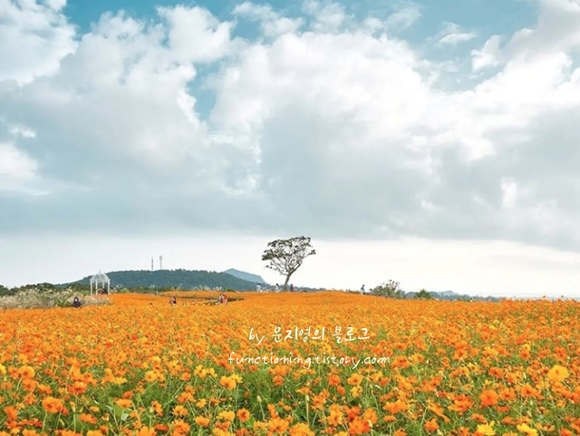 가을이면 예쁜 꽃 구경이 무료인 10월 제주도 여행코스 2박 3일 추천하는 곳입니다. 황화코스모스와 하양 코스모스가 만발해서 산책하며 사진 한 장 남기고 오기에 딱이었습니다. 제주 남서쪽 여행코스 즐기시는 분들 꼭 한번 들러 보세요. 제주신화테마파크 원형 교차로이고 서머셋제주신화월드 검색하면 황화코스모스 가득한 곳을 발견할 수 있습니다.