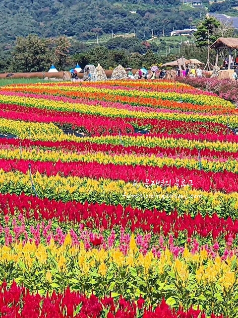 맨드라미철 꼭 가봐야 하는 고석정꽃밭은 알록달록 맨드라미가 마치 무지개처럼 예쁘게 펼쳐져 있는 곳입니다. 22.09.09-22.10.31 기간 동안 고석정꽃밭 축제를 하니 가을 축제 가볼만한 곳 best 10 방문한다면 맨드라미 외에도 버베나, 천일홍, 코스모스, 댑싸리 등 다양한 꽃이 피어있어서 가을 꽃구경 실컷할 수 있습니다.