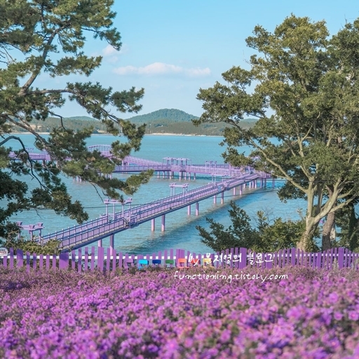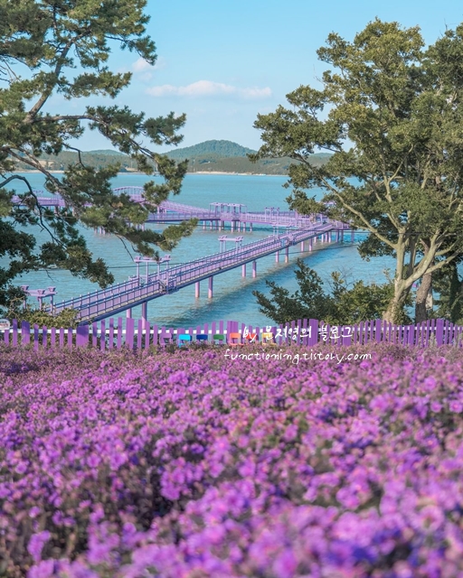퍼플섬은 반월도와 박지도가 이어져 있는 섬인데 동네의 지붕들이 온통 보라색이고 카페, 전동차, 다리 그리고 길까지 보라색으로 꾸며둔 귀여운 섬입니다. 게다가 시즌별로 보라색 꽃들을 심어 축제까지 하니 안 가볼 수가 없는 그런 곳입니다. 아스타국화는 10/1-10/31 까지 피어있어 가을 축제 가볼만한 곳 best 10으로 힐링을 줍니다.