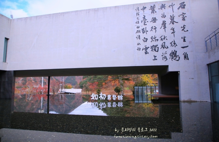 강원도 인제의 여초서예관은 당대 최고의 명필 여초 김응현 선생의 작품을 전시하고 있는 서예 전문 박물관인데 인제 가볼만한곳 베스트 10으로 잘 알려지지 않은 숨은 명소입니다. 건물 곳곳에 일필휘지로 갈겨쓴 듯한 글씨가 이곳이 서예 박물관임을 잘 보여주며 1층에 배치된 투영연못은 건물과 주변 송림을 그대로 담아내 무척 아름다운 공간입니다. 한국건축문화대상 우수상을 받았으며 올해의 BEST 건물 7’에 선정되기도 했습니다.