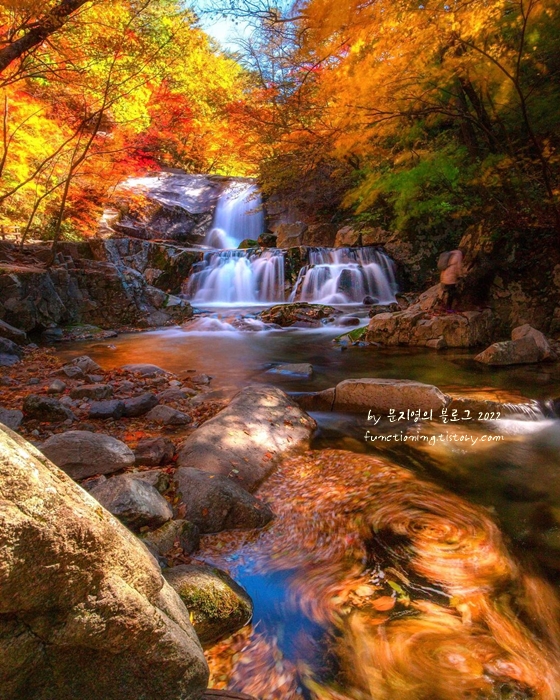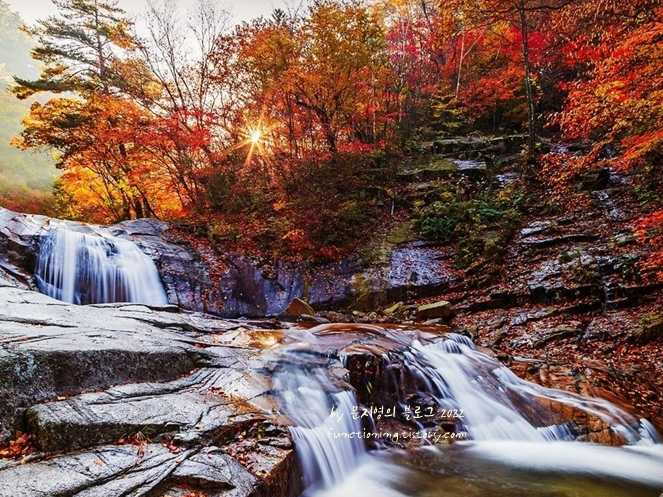 늦가을, 서정적인 시와 노래가 흐르고 있는 방태산은 가을 강원도 여행 갈만한곳으로 산의 소중함을 느낄 수 있는 곳입니다. 호젓한 단풍 여행을 즐길 수 있는 방태산은 우리나라에서 제일 큰 자연림으로 우직한 느낌이 있습니다.