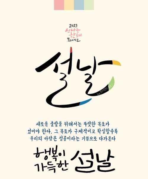 안녕하세요, 모두 새해복 많이 받으세요! 2023년 설날 인사말 좋은글 문구 모음 이미지 모음입니다. 설날 이미지는 2023년 설명절에 맞게 새롭게 만들었고, 설 인사말 문구는 덕담으로 활용하시거나 회사, 어린이집 설날 인사말 문구로 활용하셔도 좋을 것 같습니다.