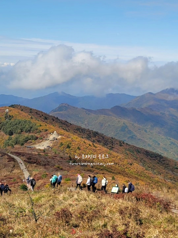 노고단에 가을이 내려앉으면 성큼 다가온 계절의 변화가 느껴집니다. 11월에 전남 가볼만한곳 베스트 10으로 추천하는 노고단 정상에 가실때에는 국립공원홈폐이지에서 미리 탐방 예약 필수이지만 노고단 고개 앞에서 당일 현장예약도 가능합니다.