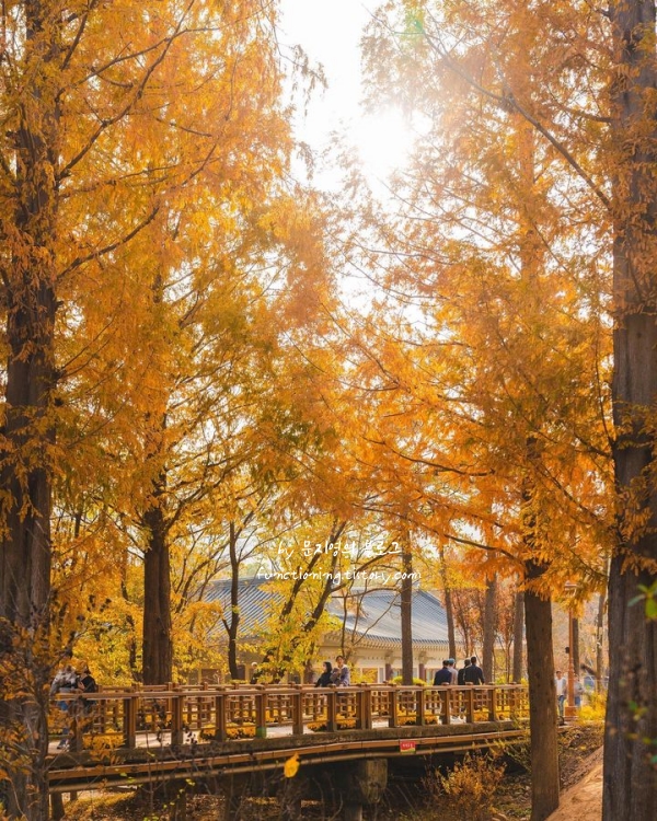 가봤던 가을여행지 중 단연 1순위인 11월에 가볼만한 국내여행지 경북 천년숲정원입니다. 가을 단풍 명소는 좋은 곳들이 정말 많지만 제가 가본 곳 중 가을여행지로 가장 추천하는 명소입니다. 경북 산림환경연구원에서 관리 운영되던 산림자원을 활용해 33ha 규모로 조성되었고 이국적인 풍경이 정말 너무 아름답던 11월 단풍구경 가볼만한 곳이었습니다. 외나무 다리 외에도 메타세콰이어 길도 예쁘니 함께 가보세요!