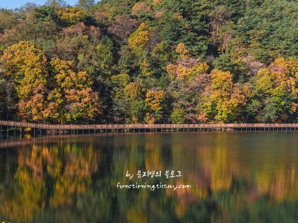 단풍이 들면 제천에서 제일 예쁜 곳 11월 서울근교 가볼만한곳 베스트 10 비룡담 저수지입니다. 10월 말이면 볼 수 있는 제천의 단풍맛집 제천 비룡담 저수지는 여름과는 또 다른 가을의 알록달록함이 맑은 날 파란하늘과 대비를 이루어 눈이 맑아지는 듯한 아름다운 색을 보여주었던 가을 여행지 베스트 50입니다.