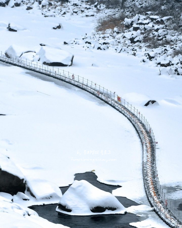얼음 왕국 속 트레킹을 즐길 수 있는 강원도 철원 한탄강물윗길 트레킹은 정말 특별한 12월 여행지 추천 장소입니다. 유네스코 세계지질공원 한탄강의 주상절리를 감상할 수 있는 곳으로 12월 초 전체 개방되어 물 위를 거니는 짜릿한 기분을 만끽할 수 있는 서울근교 겨울 여행지 베스트 10입니다.