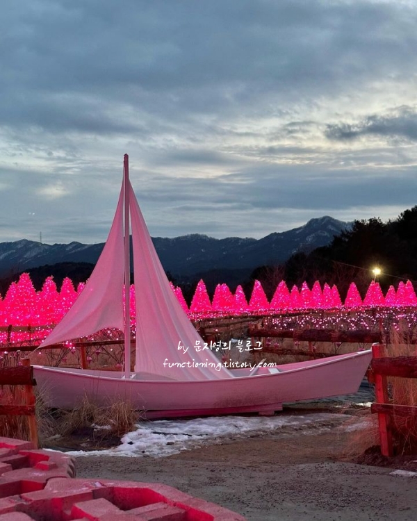 해가 지면 더 예쁜 핑크빛 동화 마을 허브아일랜드는 서울 근교로 1시간 이내에 도착 가능한 2월 가볼만한곳 베스트 10입니다. 가을에 핑크모래로 핫했던 ‘포천 허브아일랜드’ 은 최근 핑크빛 대형 물결으로 가득 찼습니다. 대규모 핑크빛 물결과 낭만 분위기가 표현이 안 되어 아쉬울 정도로 직접 봐야 그 아름다움을 알 수 있기에 경기도 서울근교 2월 축제 가볼만한곳으로도 강추합니다.
