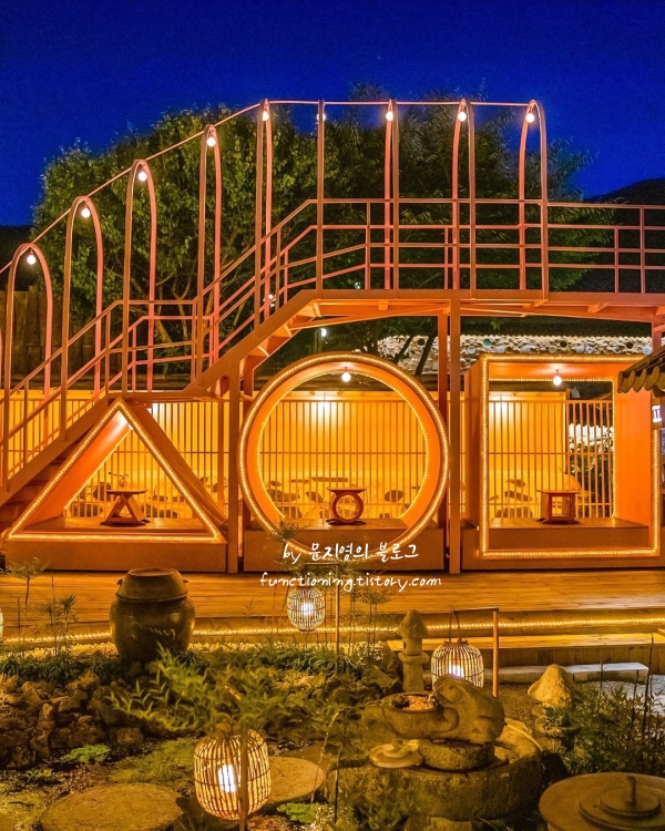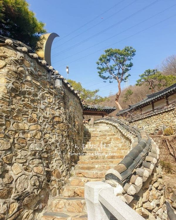 규모가 커서 곳곳에 예쁜 포토스팟들 찾으며 내부 인테리어를 둘러보는 재미도 쏠쏠했던 2월 가볼만한 여행지로 오징어 게임이 생각나는 계단, 귀여운 돌다리, 한옥 감성 가득한 야외 정원에서 인생사진도 찍을 수 있습니다. 한가한 평일 저녁에 방문 하면 몽환적인 야경에 인생샷 만장 건질 수 있고 낮에는 서운산 바로 근처라 카페 안에서 시원하게 산뷰 구경하며 커피 한잔 하면 모든 근심 걱정 사라지는 기분입니다.
