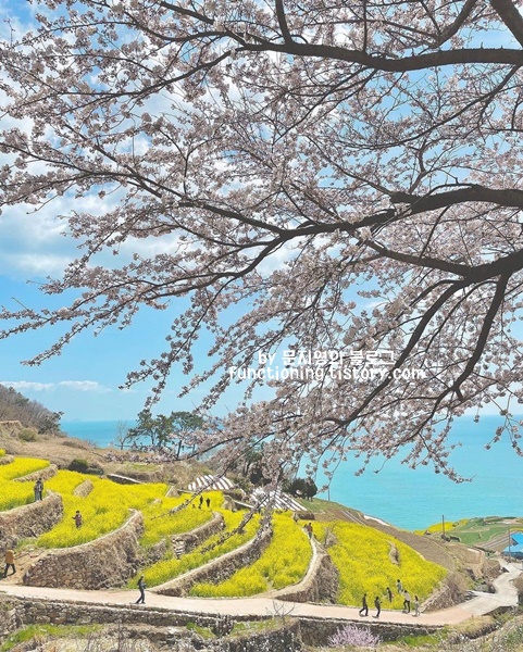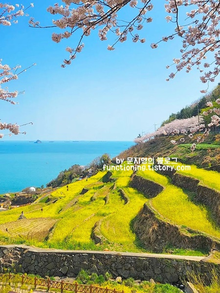 봄꽃 여행지 하면 빠질 수 없는 3월 여행지 추천 남해 다랭이마을입니다. 다랭이마을에서는 벚꽃과 유채꽃을 같이 볼 수 있는데, 그 절경이 말로 표현할 수 없습니다.