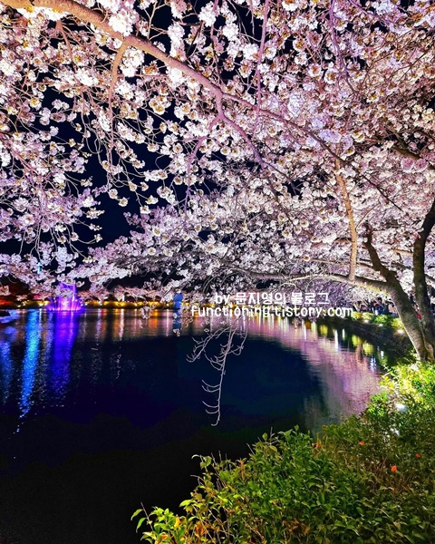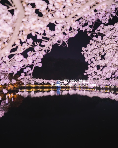 호수도 생각보다 엄청 커서 한바퀴 도는데 30분이상 소요됩니다. 특히 밤에는 벚꽃이 호수에 반영되는게 정말 아름다우니 이번 3월에 여행하기 좋은곳 벚꽃시즌 때 꼭 가보시는 걸 추천합니다.