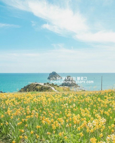 제가 진짜 좋아하는 부산 오륙도는 일몰 시간도 예쁘지만 해 쨍하게 드는 낮시간도 정말 예쁘답니다! 3월 말까지는 예쁜 수선화를 계속 볼 수 있으니 3월 부산 가볼만한곳 베스트 10 부산 필수 여행코스로 추천합니다.