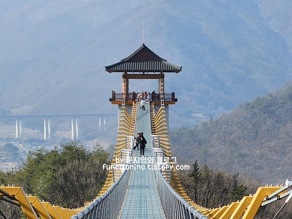 출렁다리도 진화하는 중이라 이제 그냥 출렁다리는 식상하기도 합니다. 26억을 들여서 만든 문경 신상 핫플로 5분 이상 등산하면 만나게 되는 이색적인 출렁다리로 바닥까지 보이는 아찔한 극강의 공포를 즐길 사람에게 추천합니다.