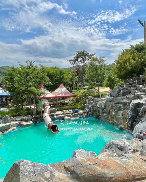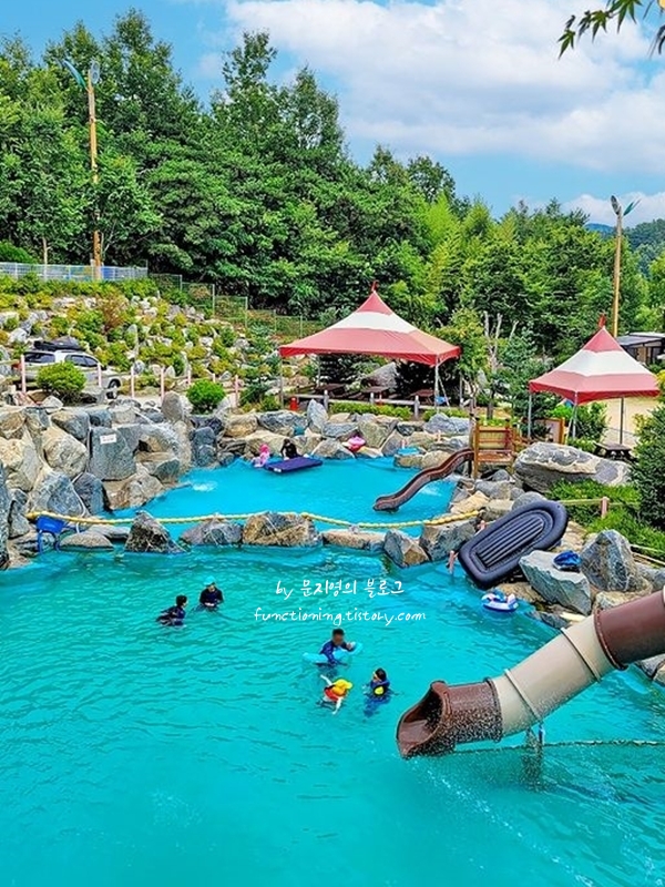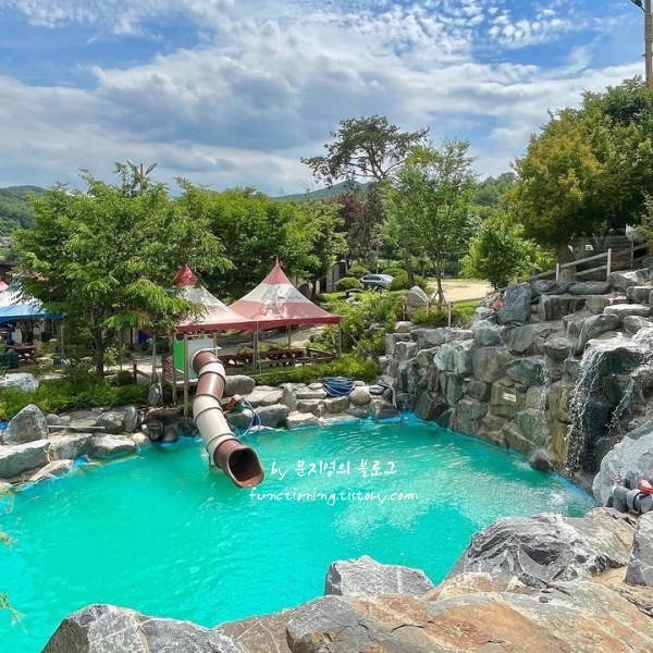 경북 군위 가볼만한곳 여름 여행 필수코스 군위 캠핑장+수영장입니다. 보기만 해도 시원한 대형 수영장에 꿀잼 보장 워터슬라이드까지 첨벙첨벙 하고 싶은 욕구 가득해지는 곳입니다.