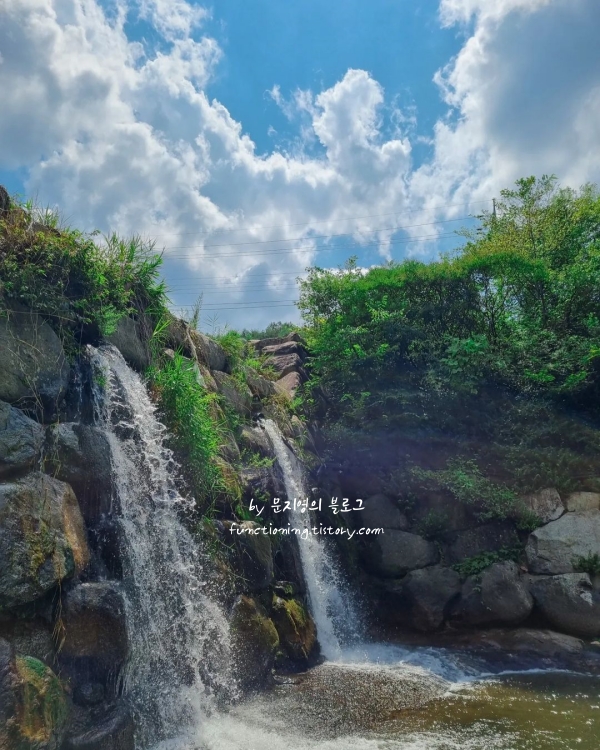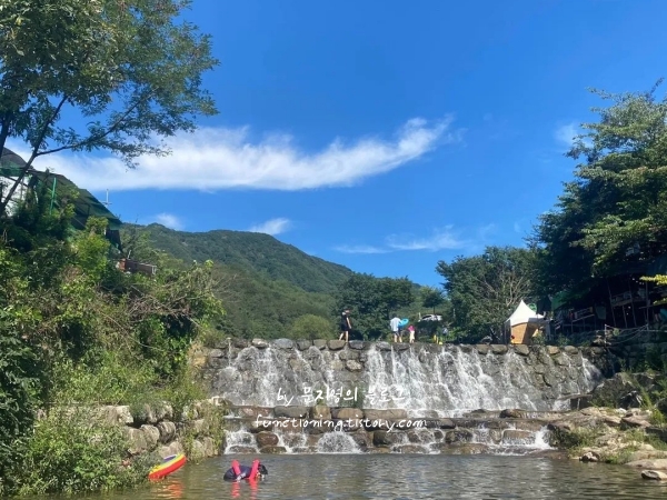 자연이 선사한 워터 슬라이드가 있는 여름 군위 가볼만한곳 베스트 10 1위인 동산계곡입니다. 계곡 바위 미끄럼틀 타고 물속으로 퐁당 할 수 있고 동산계곡은 취식도 가능해서 나무 아래 텐트 치고 캠핑을 즐겨도 좋습니다.