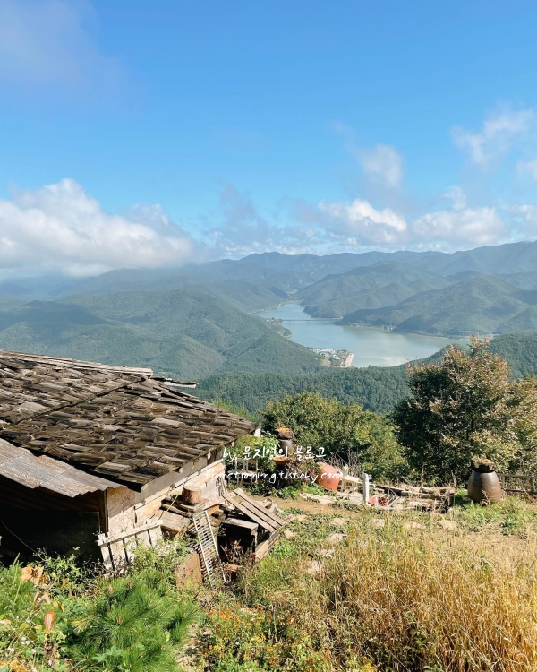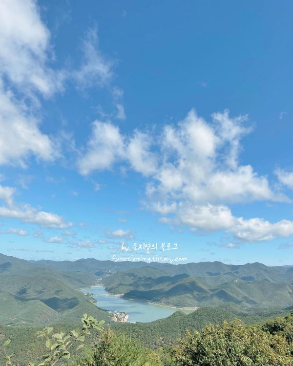 군위 화산산성 전망대까지 오르는 길은 꽤 가파르고 꼬불꼬불하지만, 도착하면 그 자체로 힐링이 되는 군위 가볼만한곳 베스트 10입니다. 하늘 전망대에서는 군위호와 화산마을의 전경을 한눈에 담을 수 있어 뷰가 정말 멋졌습니다.
