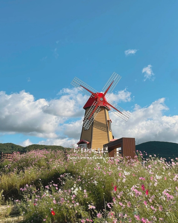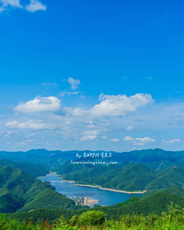 풍차 전망대에서는 좀 더 가까이 군위댐을 볼 수 있으며, 일출이나 운해가 피어오를 때의 풍경은 마치 그림처럼 아름다웠습니다. 주차 공간도 잘 마련되어 있어 편리하게 주차할 수 있었고, 바람이 솔솔 불어오는 곳에서 자연의 경치를 감상하며 걷다 보니 몸과 마음이 모두 상쾌해지는 느낌이었습니다.