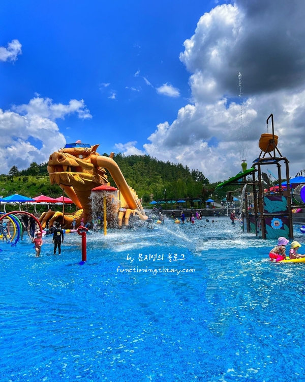 군위 아이와 함께 가볼만한곳으로 삼국유사테마파크만한 곳이 없습니다. 도착하자마자 해룡물놀이장으로 직행했는데, 아이들이 너무 좋아했습니다. 수심이 얕아서 어린 아이들도 부담 없이 놀 수 있었고, 다양한 미끄럼틀과 물총 놀이시설이 잘 갖추어져 있어 즐거운 시간을 보낼 수 있었습니다.