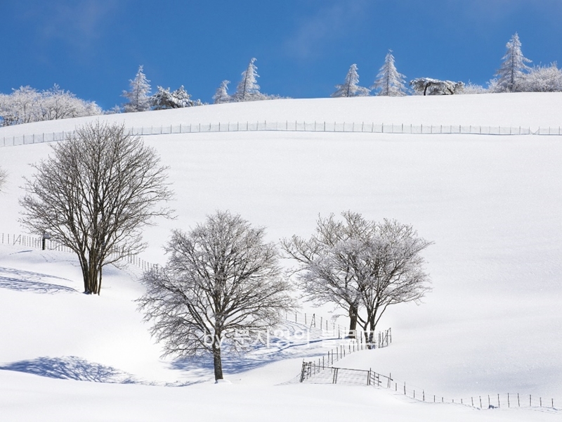 서울 여의도보다 무려 7.5배나 넓다고 하는데 수치로는 상상이 되지 않는 크기입니다. 높은 구릉에서 소들이 풀을 뜯는 광경이 여유롭고 아름다우며 겨울에는 설경이 최고 볼거리지만 여름에 그 초록한 풍경도 힐링입니다. 송승헌, 송혜교, 원빈, 한채영 등이 출연해 시청률이 엄청 높았던 드라마 가을동화의 촬영지로도 유명한 곳입니다.