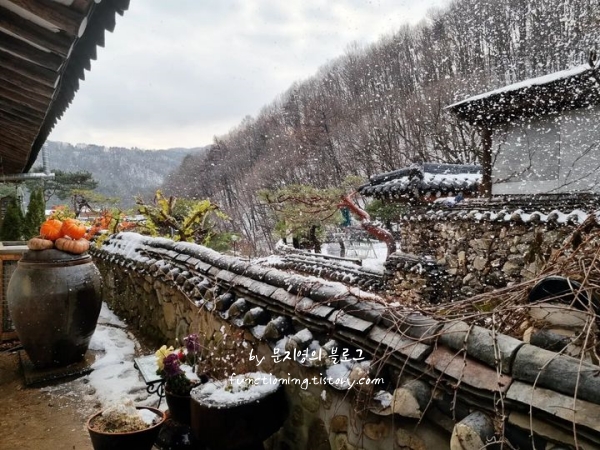 경기도 겨울 당일여행 갈만한곳 광주에카페 새오개길39는 전통 한옥의 아름다움과 현대적인 감각이 어우러진 공간인데 겨울이면 인공눈을 뿌려주는 이벤트가 있습니다.