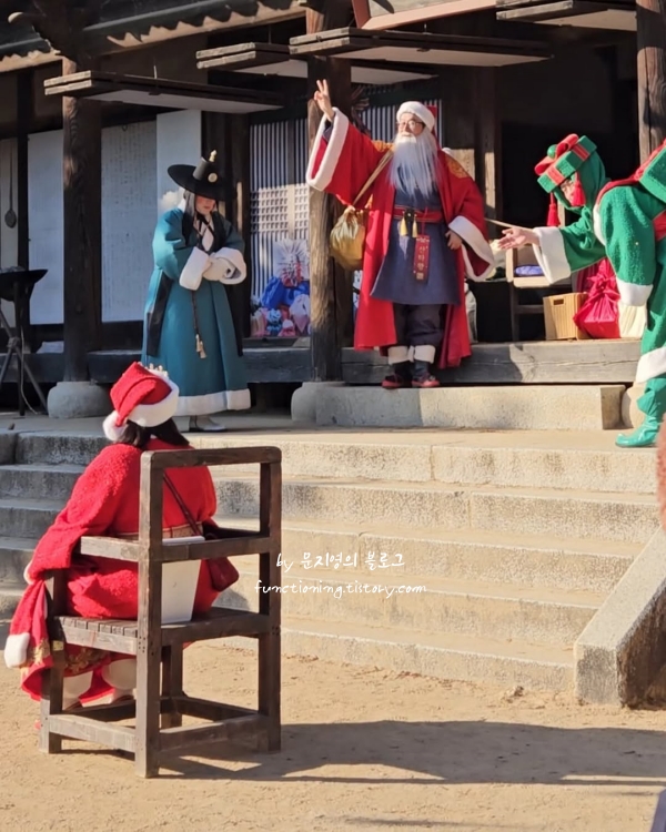 한국민속촌에서 진행 중인 '킹받는 크리스마스' 축제는 조선 시대를 배경으로 한 크리스마스 테마를 활용해 조선 산타왕이 선물을 내려준다는 흥미로운 설정을 중심으로 다양한 체험과 전시가 아주 재미있었습니다. 밤 8시까지 운영되어 화려하게 빛나는 조선의 밤을 구경할 수 있어요.