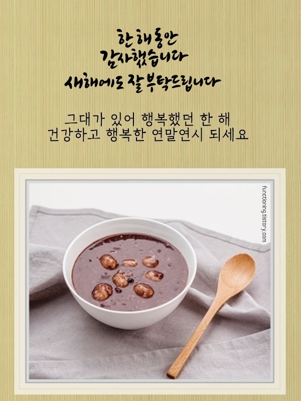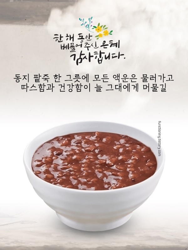 낮이 가장 짧다는 동지, 오늘 해는 더 빨리 떨어지겠지요. 격동의 한 해를 보내면서 많이 힘들었지만 그래도 무탈하게 한해를 마무리하는 연말입니다. 달달한 팥의 향으로 오늘만큼은 더 행복한 하루 되시면 좋겠습니다. 따뜻한 동지 보내시고, 새로운 꿈과 희망을 키우는 새해 맞이하시길 기원합니다.