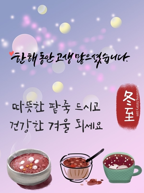 동지의 붉은 팥죽처럼 당신의 겨울에도 따뜻한 빛이 스며들길 바랍니다. 어둠은 더 큰 빛을 준비하는 과정이라 했지요. 오늘만큼은 팥죽 한 그릇의 온기로 스스로를 위로하며 여유를 가져보세요. 새해에는 더 많은 웃음과 행복이 당신 곁에 머물기를 소망합니다.