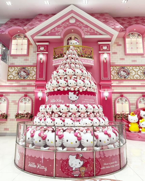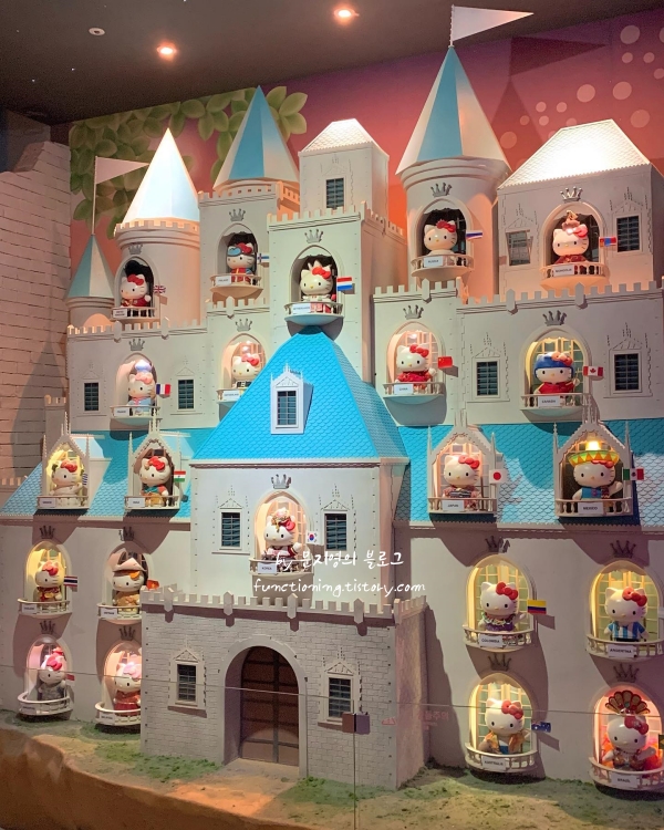 로비에 들어서자마자 눈에 띄는 것은 산처럼 쌓인 헬로키티 탑입니다. 공식 포토존이라 사진을 찍지 않고 지나칠 수 없죠. 2층에 있는 헬로키티카페는 구경하다 지칠 때 들르기 딱 좋은 곳입니다. 아기자기한 의자에 앉아 귀여운 디저트와 달달한 음료를 즐기다 보면 시간 가는 줄 모릅니다.