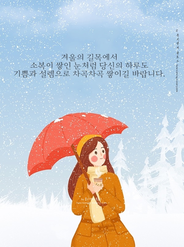 1월 중순, 눈이 내리고 바람이 차갑지만 마음속 따뜻함은 결코 식지 않기를 바랍니다. 겨울은 다가오는 봄을 준비하는 시간이기도 합니다. 하루하루가 소중한 추억으로 쌓여가길, 따뜻한 미소와 함께 겨울을 즐기면 좋겠습니다. 건강하고 행복한 1월 되세요.