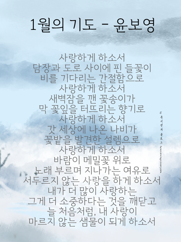 1월의 마지막 주를 보내며, 새로운 달을 준비하는 설렘을 느껴보세요. 차가운 겨울 바람 속에서도 봄은 천천히 다가오고 있습니다. 마음속의 희망과 목표를 다시금 되새기는 시간이 되기를 바랍니다. 따뜻한 하루하루로 1월을 마무리하세요.