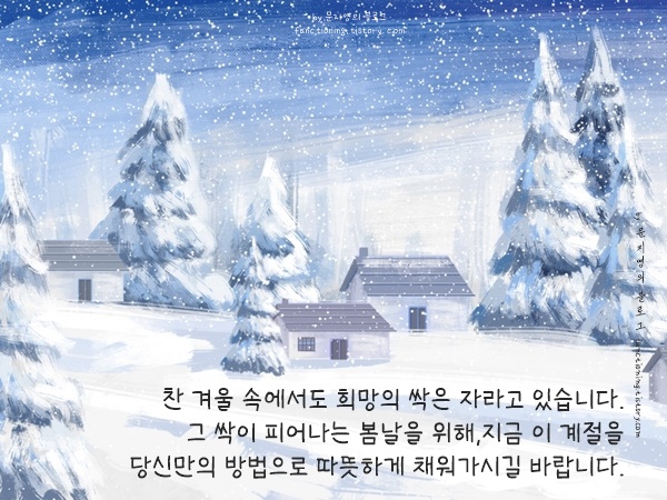 겨울의 깊이가 느껴지는 1월 중순, 추운 날씨에도 희망의 불씨는 타오르고 있습니다. 바람이 차가워도, 마음속 꿈과 목표는 더욱 선명해지고, 따뜻한 온기와 함께 행복이 가득한 날 되시길 바랍니다. 건강하게 겨울을 보내시기를 기원합니다.