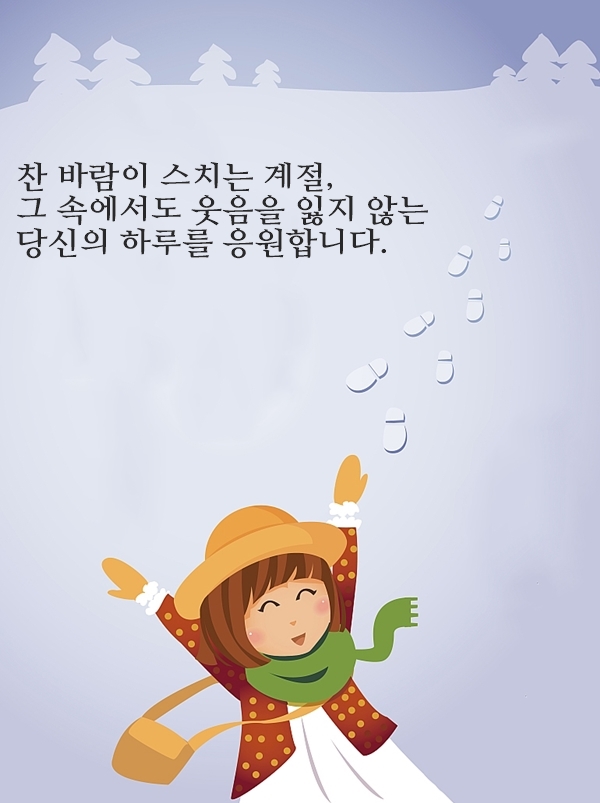 날씨가 추운 만큼 건강 관리가 필요한 시기입니다. 외출 후에는 따뜻한 물로 손을 씻고, 온기를 잃지 않도록 신경 써주세요. 몸과 마음 모두 건강하게 겨울을 보내시고 오늘도 따뜻하고 편안한 하루 되세요.